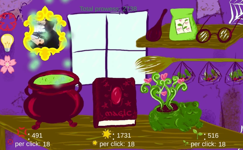 I made this game during Unity Brighton Game Jam #3! I had the idea to create a clicker that couldn't be abused by using click spamming tools, and I've been thinking about making something witchy themed. The theme was "Stories" and I wanted to tell a story without explicitly telling a story. Witchy Clicker is the story of growing your prowess and improving as a witch.